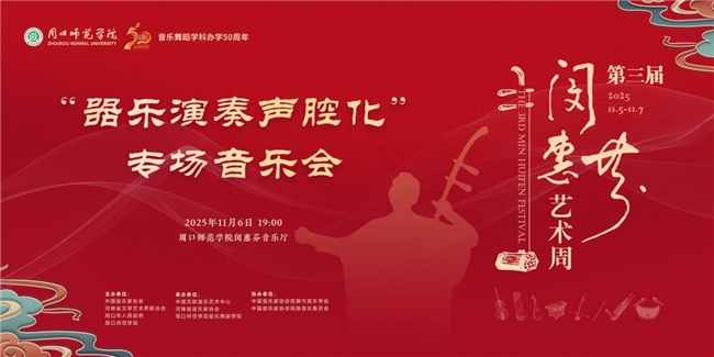 为深入学习贯彻党的二十大精神,认真落实习近平总书记关于文艺工作的重要讲话,弘扬中华优秀传统文化,值此二胡艺术大师闵惠芬先生诞辰80周年之际,由中国音乐家协会、河南省文学艺术界联合会、周口市人民政府、周口师范学院共同主办的第三届“闵惠芬艺术周”将于2025年11月5日-7日在周口师范学院隆重举行。